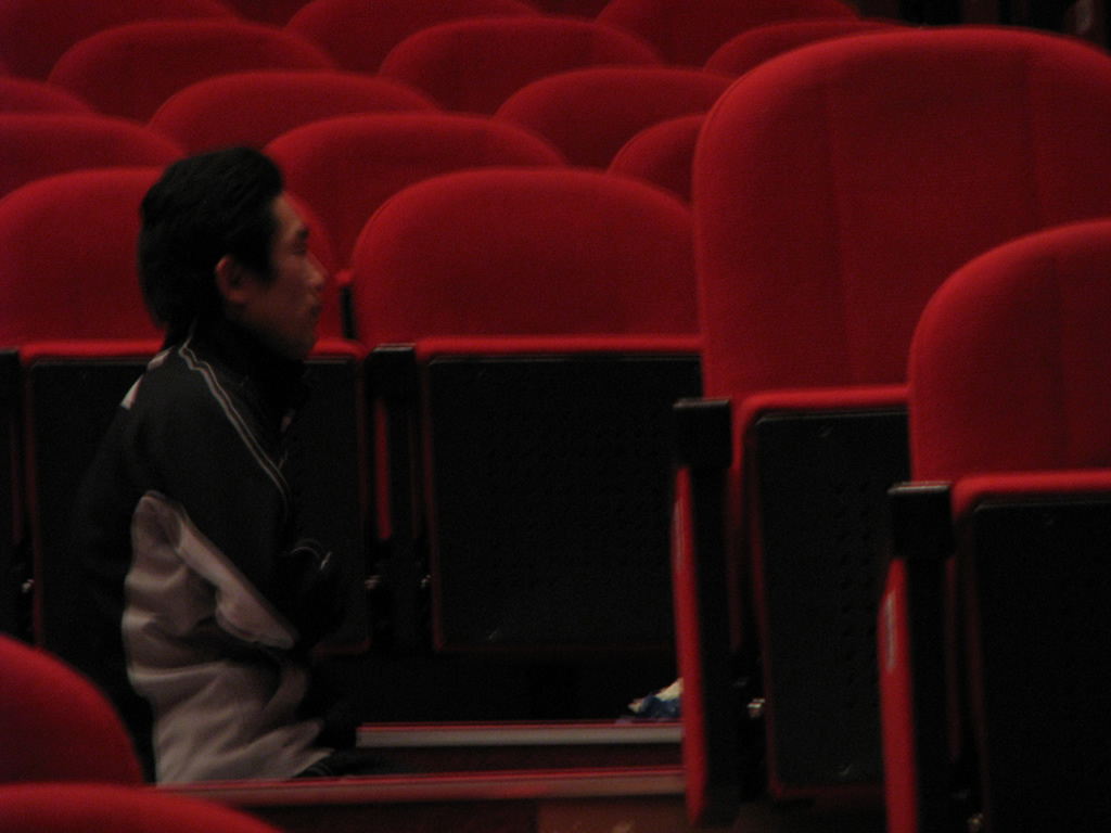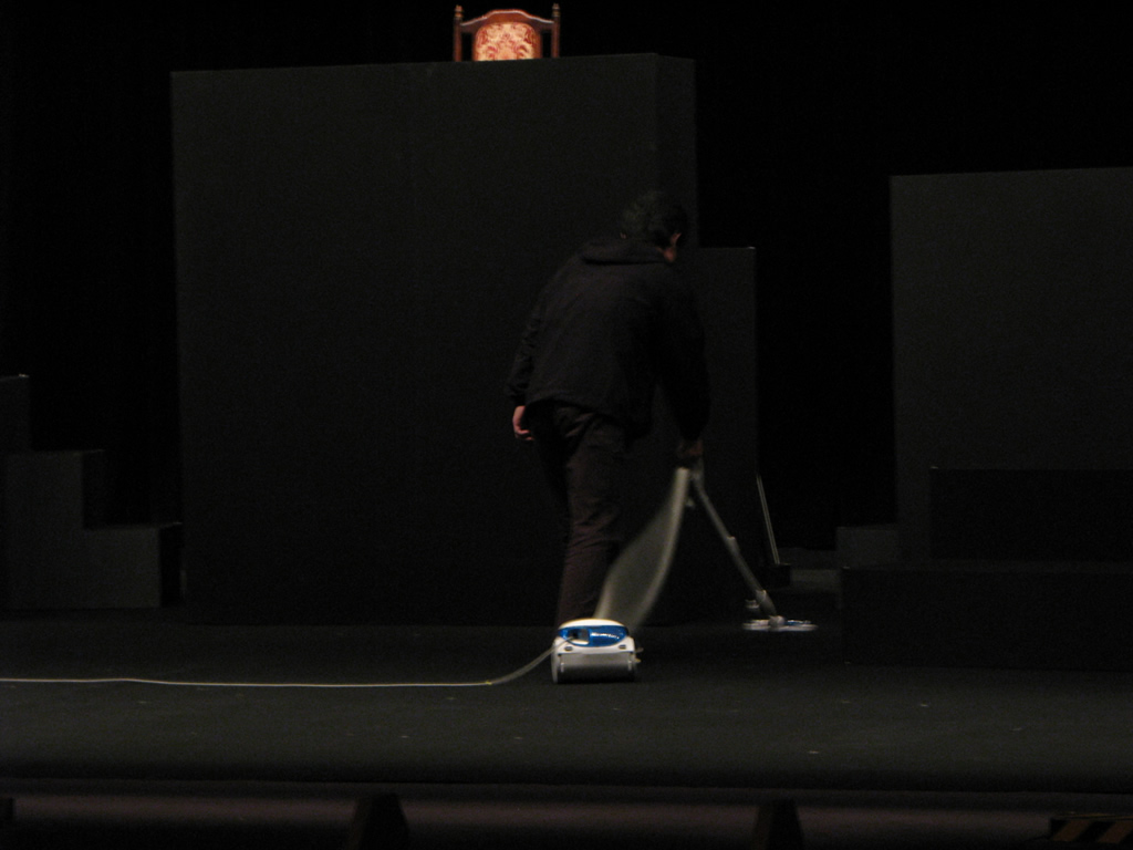 本番前に掃除機を駆る舞台監督。以上、製作部のファンタジスタこと村井貴でした。(古畑任三郎風)