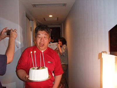 襲撃!! 2009年07月16日 01:00 7月21日は小鈴役 野々村のんの誕生日。 日付が変わる12時ちょうどに野々村の部屋を訪れ、 誕生日祝いをしました。 ろうそくの火が消えないようにゆっくり進む田中耕二。 プレゼントの目玉は !! 「流しそうめん」セット ちゃ〜んとそうめんもついてます!! それぞれのプレゼントを持って記念写真。 のんさんお誕生日おめでとうございます 「赤シャツ」カテゴリの最新記事 < 前の記事次の記事 >
