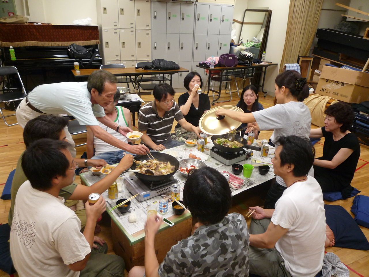 「ムエン一族」 すき焼きの夜 2011年08月31日 18:34 「ムエン一族」、本番まで1ケ月を切りました。稽古は順調に進んでおります。 稽古終了後に飲んだ第三のビールの本数も300本を超えました(驚) そんな中、昨日30日は稽古後に全員ですき焼きをやりました! 国産黒毛和牛を加茂が提供。 暑い中でビールを飲みつつ食べるすき焼きは最高です!! 演出のイケタニさんと丸山さん 一番食べたのはこの方 「ムエン一族」カテゴリの最新記事 < 前の記事次の記事 >